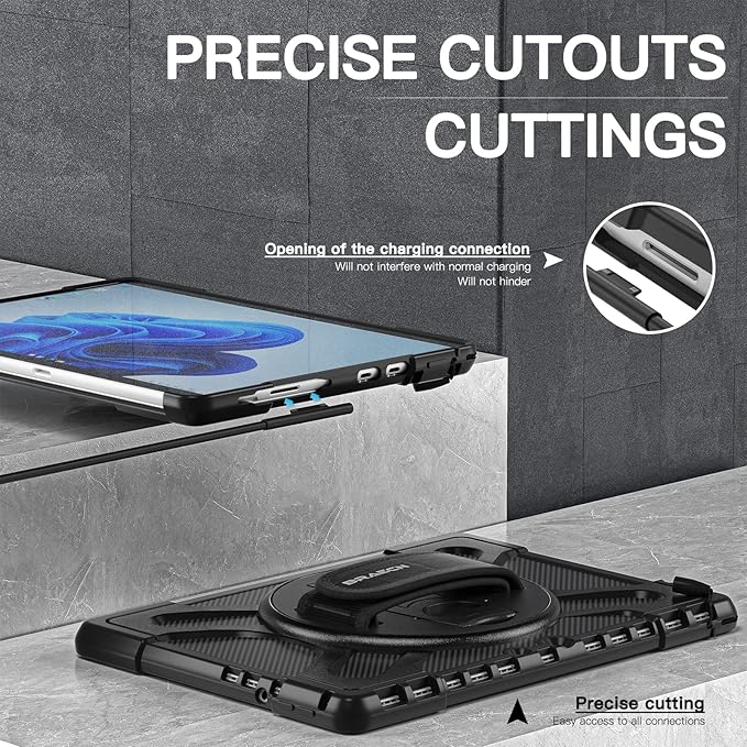 - Material Structure:This Surface Pro 8 -13 inch with 360 swivel stand/hand strap, retains the keyboard adsorption interface, the shell is combined with silicone and +PC, and feels comfortable,and the corners have buckles to prevent the keyboard from falling off.