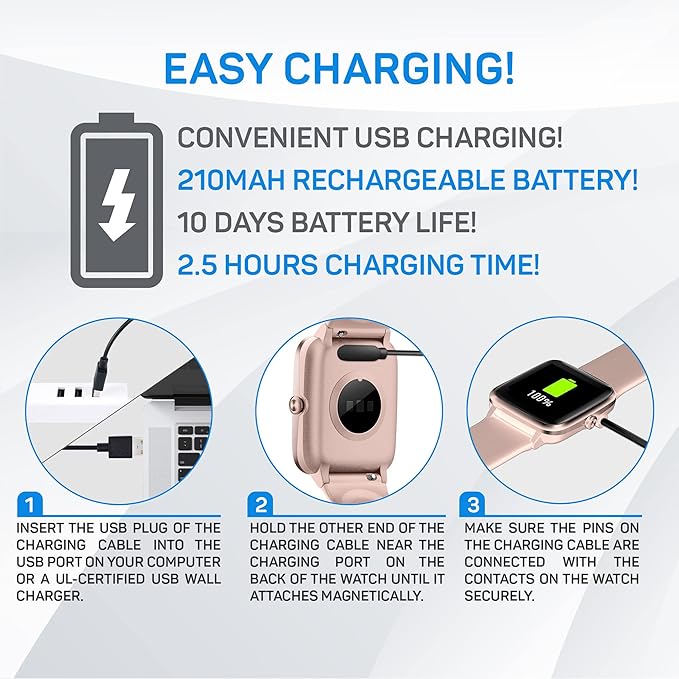 - [Outstanding Battery Life] Enjoy 8-10 days of battery life with a 210mAh battery. The charging time is approximately 1-2 hours! (See Note 4).