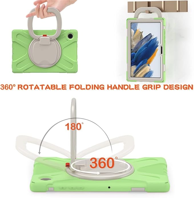 360 Rotation Case for Samsung Galaxy Tab A8 10.5" Sturdy Cover Rotate Ring Stand Shoulder Carrying Strap Hand Strap Rugged Children Adults Outdoor Case, LightGreen