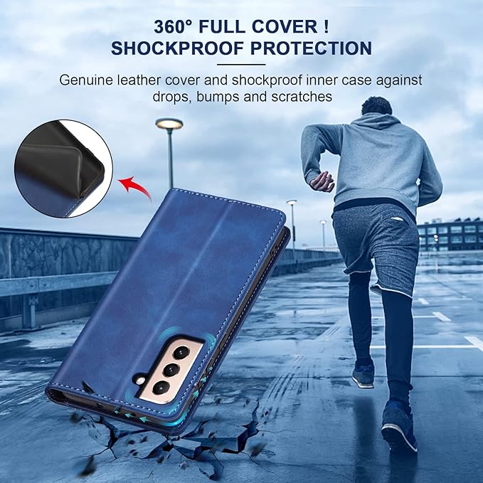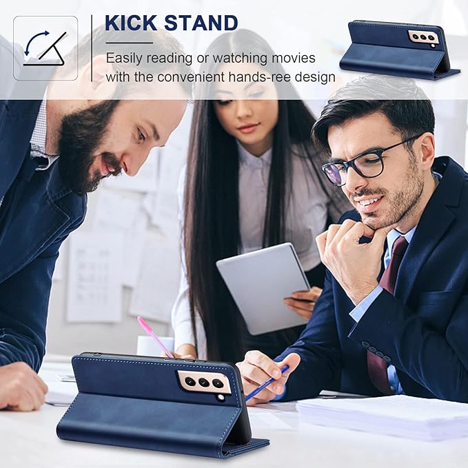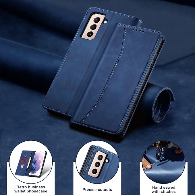 Jasonyu Wallet Case for Samsung S21 Plus, PU Leather Cover with Stand, Magnetic Folio Flip, TPU Shockproof Interior Case and Card Holder Slots, Blue