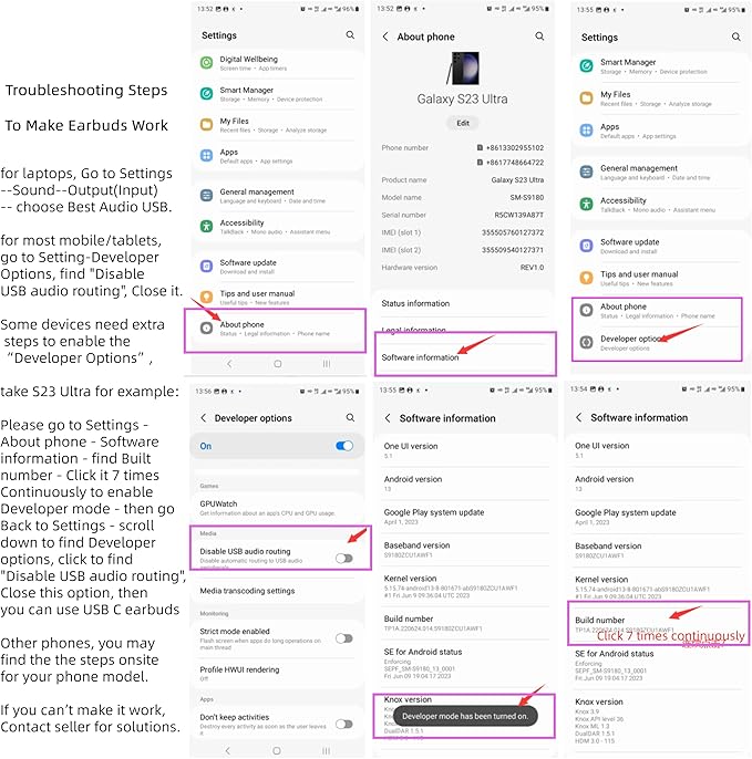 - Wired Earbuds with Magnetic Design: earbuds designed with strong magnets, you can tag them together and wearing around neck while resting to free your ears and keep them reachable. It is super convenient when you are playing games, listening to music, watching movice, driving a car, working, sturdying, conferencing, broadcasting, etc. NOTE: If the earbuds has No Sound when using on mobile, go to Setting, Developer Options, find Disable USB audio routing, Close this option