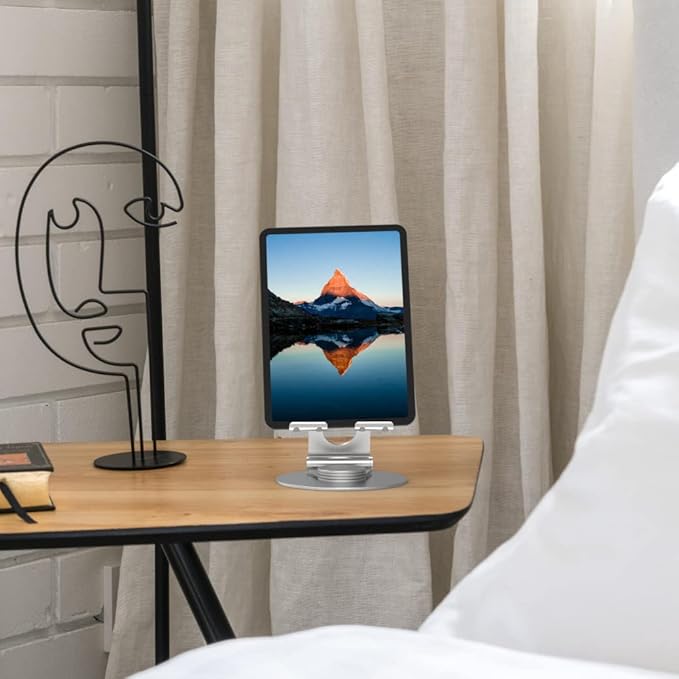 KABCON Swivel Tablet Stand, Aluminum Portable 360°Rotating Holder for Desk,Business,Kitchen,Desktop,Table Stand for iPad Pro 9.7,10.5,12.9/Air Mini,Tab,Fire,Nexus,E-Reader-Silver