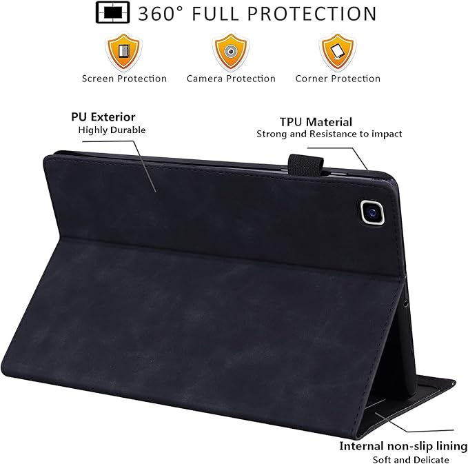 - [STRONG PROTECTION]: Two anti-skid strips provide two viewing angles for the stand position, which is convenient for reading, watching movies or typing. It is closed with an elastic band, which makes the tablet firmer when closed, and protects the screen and the cards inside from falling out.