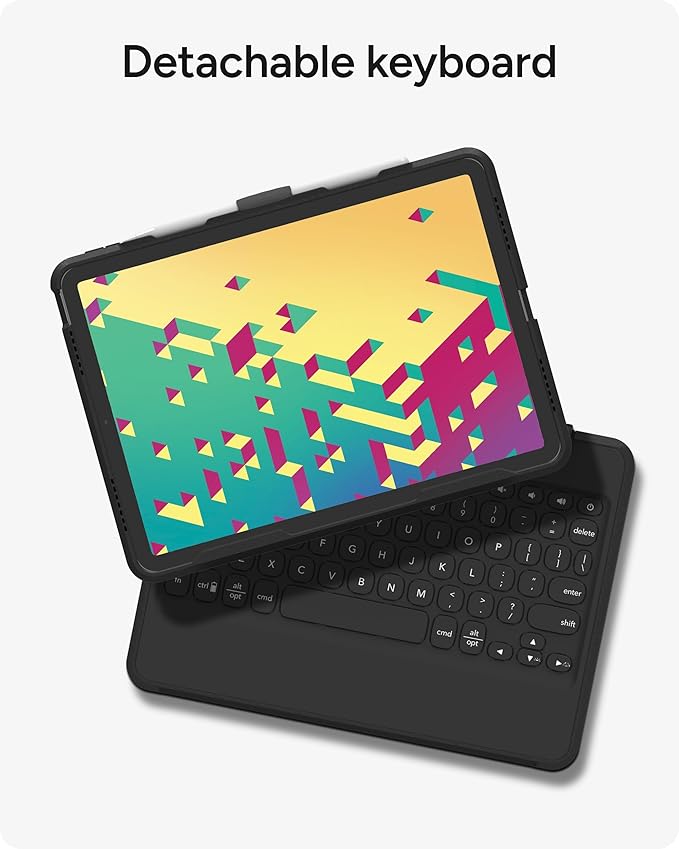 ZAGG Rugged Book Detachable Case and Magnetic-Hinged Keyboard for iPad Air 11" (M3)/ Air 11" (M2)/ iPad 10.9" (air 4th gen)/ 11" (1st & 2nd Gen), Bluetooth Pairing, Backlit Keyboard, Black