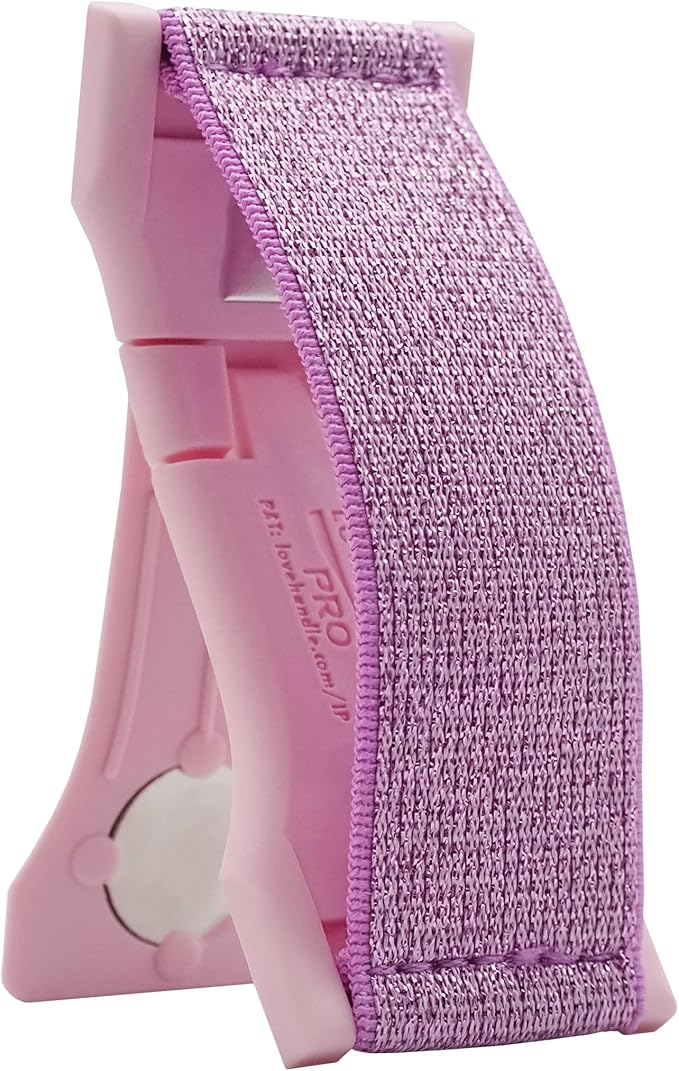 LOVEHANDLE PRO Premium Phone Grip - Elastic Phone Strap - Magnetic Phone Mount and Kickstand for Smartphone and Tablet - Pink Glitter