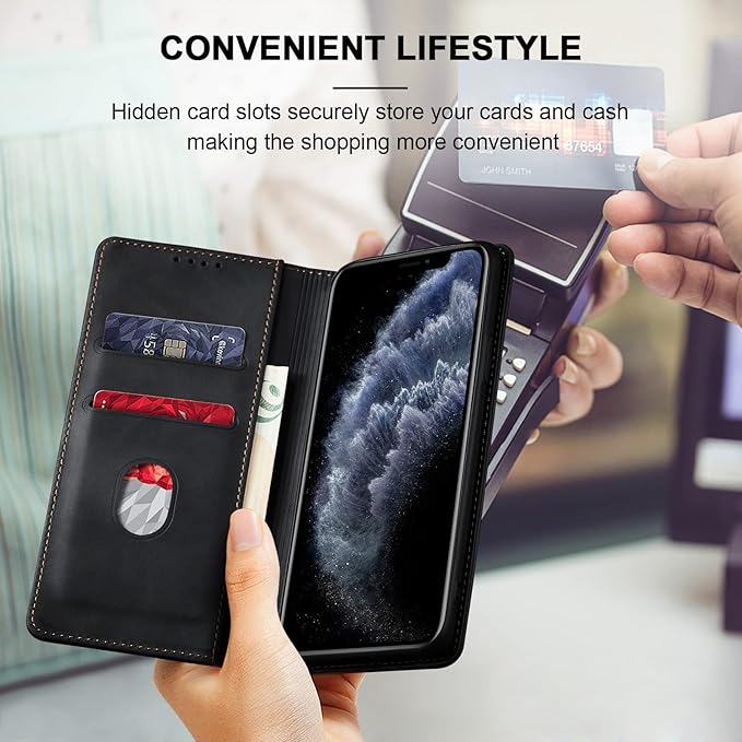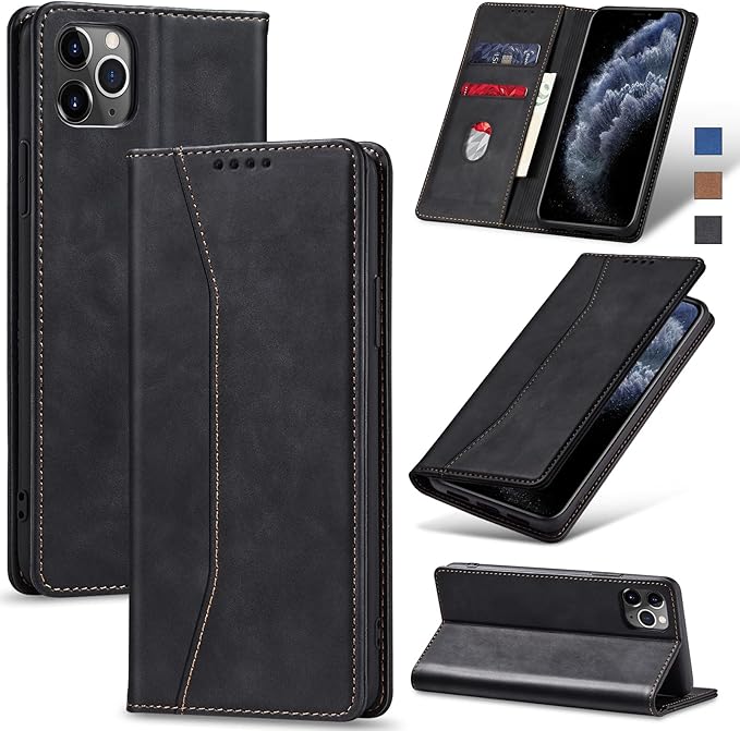 Jasonyu Flip Wallet Case for iPhone 11 Pro Max,Leather Magnetic Folio Cover with Card Holder,Kickstand - TPU Shockproof Durable Protective Phone Case,Black