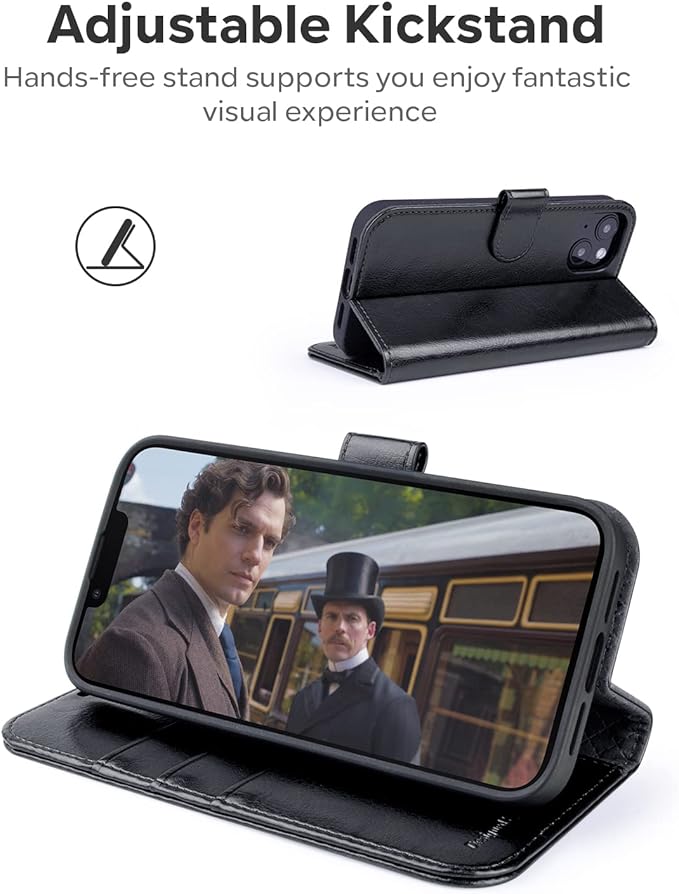 - Superior Protection: This iPhone 14 Case is made from premium PU soft leather with a special TPU inner case, the leather wallet is incredibly durable and resistant to scratches and fingerprints. It maintains the strength of fibers and its natural surface texture provides you with a soothing and luxurious tactile feeling. What’s more, the TPU case with raised edge and extra cushioning offer an all-around shockproof design that protects your device from surface scratches, drops, and dents.