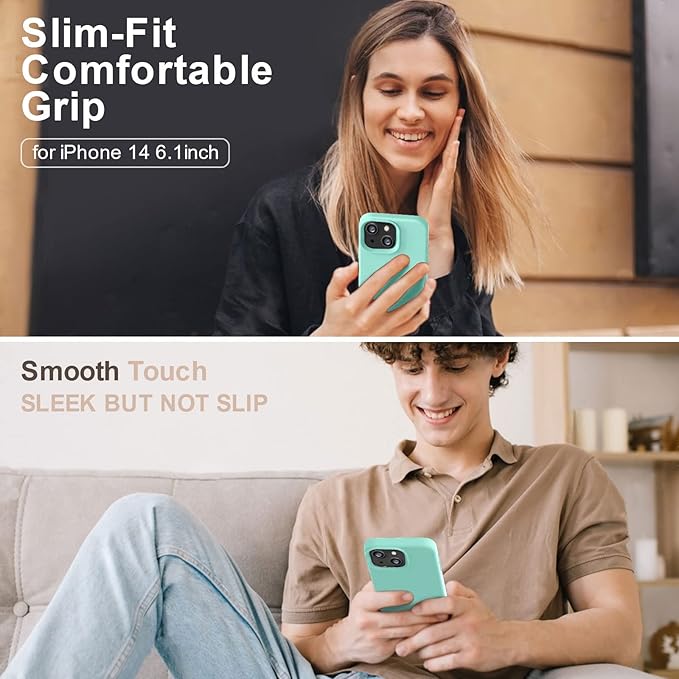 - 【German Bayer RTV664 Silicone Material】iPhone 14 silicone case is made of safe and environmentally friendly Bayer RTV664 liquid silicone, anti-dust nano oil layer, 100% microfiber lining and tough and wear-resistant PC. It has more soft and glutinous fluidity, the surface coating touch more moist and delicate. Smooth and delicate touch like baby's skin and silk, non-slip, shockproof, anti-fingerprint, easy to clean.