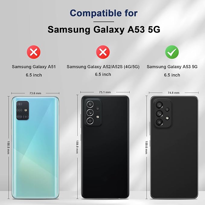 - 【Compatibility】:Designed for Samsung Galaxy A53.The Leather wallet case precise cutouts for easy access to all ports, buttons, sensors and cameras. Soft buttons with good response, are easy to press.Please check your phone model that is correct before placing an order.