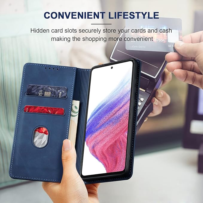 Jasonyu Flip Wallet Case for Samsung Galaxy A53 5G,Leather Magnetic Folio Cover with Card Holder,Kickstand - TPU Shockproof Durable Protective Phone Case,Blue