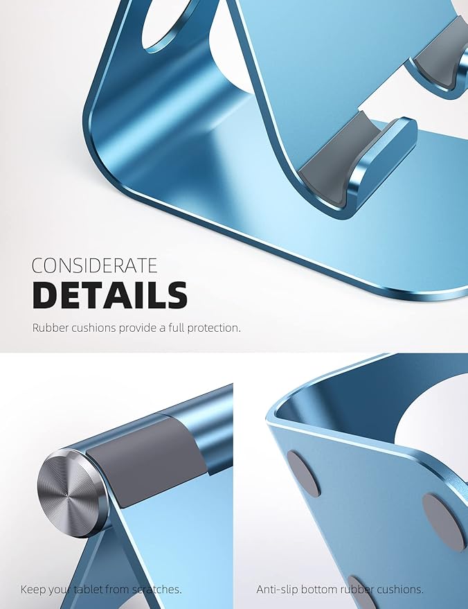 Lamicall Tablet Stand, Adjustable Tablet Holder - Desktop Stand Dock Holder Compatible with 4-13" Tablets Such as iPad Pro 11, 9.7, 10.5, 12.9 Air Mini, Kindle, Tab, iPhone Air 17 Pro Max, Blue