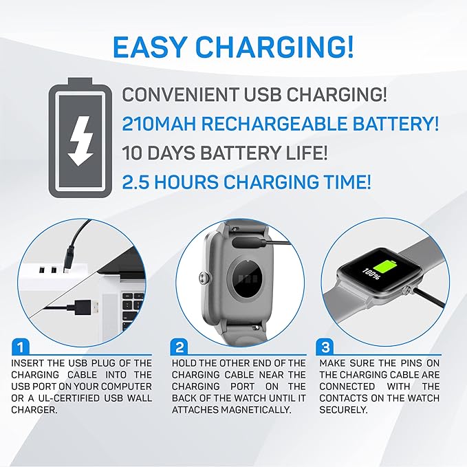 - [Outstanding Battery Life] Enjoy 8-10 days of battery life with a 210mAh battery. The charging time is approximately 1-2 hours! (See Note 4).