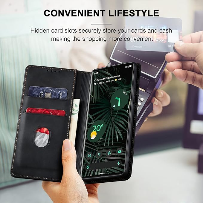 - 【Compatibility】:Designed for Google Pixel 6 Pro 5G.The Leather wallet case precise cutouts for easy access to all ports, buttons, sensors and cameras. Soft buttons with good response, are easy to press.Please check your phone model that is correct before placing an order.
