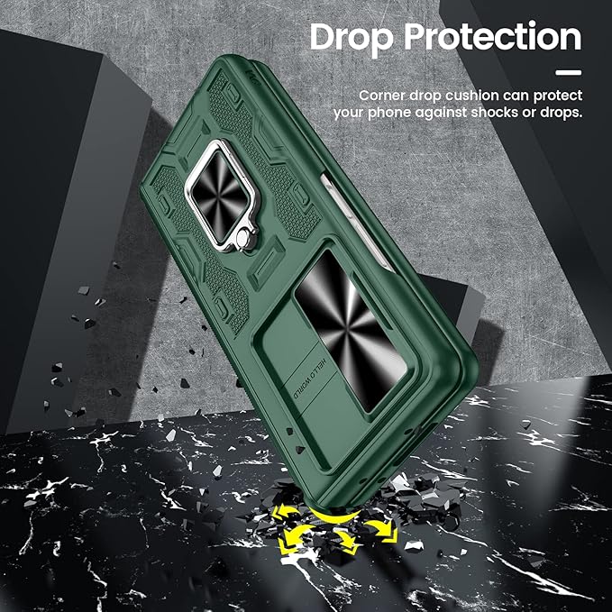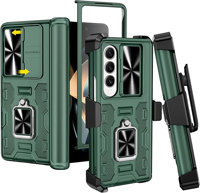 VEGO for Galaxy Z Fold 4 Case with Belt Clip Holster, 360ยฐRing Magnetic Kickstand & Camera Cover & Front Screen Protector, Hinge Protection Shockproof Armor Cover - Green