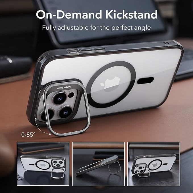 - Adjustable Stash Stand: positioned around camera frame to stay hidden when folded away while keeping MagSafe ring 100% unobstructed; enjoy a freely adjustable and stable view for watching shows whenever, wherever