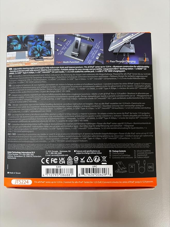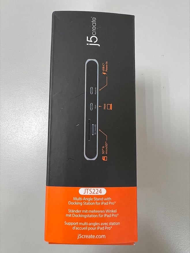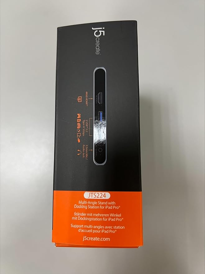 j5create Adjustable Tablet Stand with USB Type C Docking Station for iPad Pro/Air/mini : 4K60 HDMI, 2 x USB-A 5Gbps, 100W PD Charging, microSD/SD Card Reader, 3.5mm Audio Jack (JTS224)