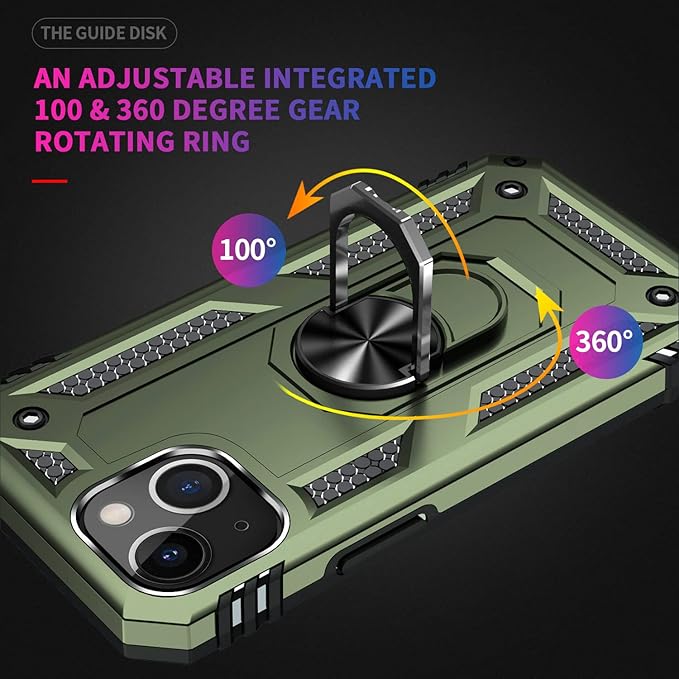 ADDIT Phone Case for iPhone 14 Plus Case,with Kickstand Ring,Adjustable Stand,Military Grade,Heavy Duty Protection,Shockproof,Anti-Fingerprint,Support Magnet Car Mount,ArmyGreen