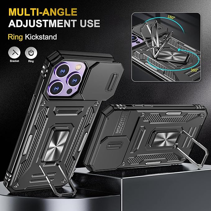 Case for iPhone 14 Pro Max Phone Case with Camera Cover, with Ring Holder Kickstand, with Magnetic Car Mount Function, for iPhone 14 Pro Max (Black)