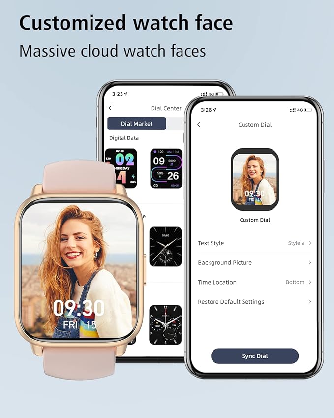 RUIMEN Smart Watches for Men Women (Answer/Make Calls, 2 Bands Included), 1.8" Smartwatch for iOS/Android Phones, Fitness Tracker Heart Rate/Sleep Monitor Digital Watch Waterproof Pink