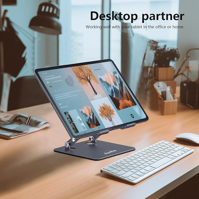 - More Sturdy & Stable : The Aoviho tablet stand holder for office desk perfectly works with 4.7 - 13 inch tablets, cell phones, and e-readers, such as new 2024 / 2022 / 2021 iPad Pro 11 / 12.9 / 13 inch, iPad 10.9, iPad Air 5 / 6/4/3/2, iPad mini 6/5/4/3/2, iPad Pro 9.7 / 10.5, Kindle, Surface Pro7/6/X, Galaxy Tab, Android tablets, iPhone 15 Pro Max, iPhone 14 Pro Max, iPhone 13, iPhone 12/11 .