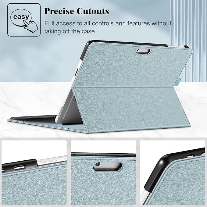 Fintie Case for 13 Inch Microsoft Surface Pro 11/10/9 - Multiple Angle Viewing Portfolio Business Cover with Pocket & Stylus Holder, Compatible with Type Cover Keyboard, Ice Blue