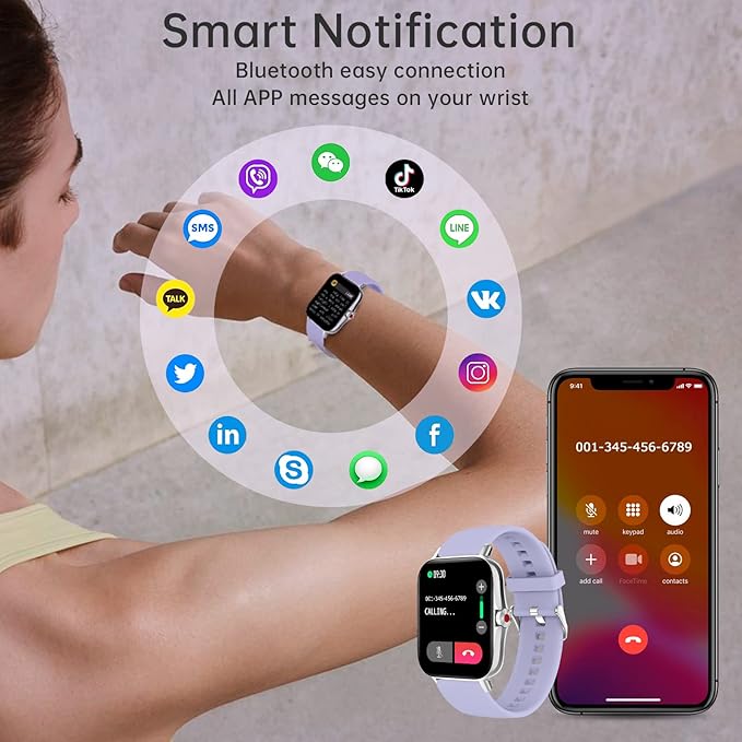- 【Make/Answer Call & Message Notification】Ultra light android smart watch for you with bluetooth, you can answer/dial directly through this watch. All the information will also be vibrate for incoming information to make you won't miss any message(SMS,Facebook,WhatsApp,Instagram,Tiktok,X,etc.) Colesma smartwatch for women acts as your personal companion when you are exercising or in a meeting.