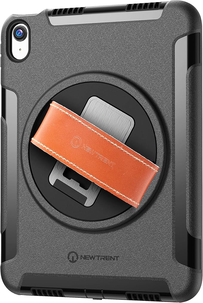 Original Rugged iPad Case for iPad 11 (A16) 11-inch (2025) & iPad 10th Gen 10.9-inch (2022) | 360° Rotating Kickstand, Genuine Leather Hand Strap, Built-in Screen Protector (Black)
