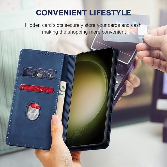 Jasonyu Flip Wallet Case for Samsung Galaxy S23 5G,Leather Magnetic Folio Cover with Card Holder,Kickstand - TPU Shockproof Durable Protective Phone Case,Blue