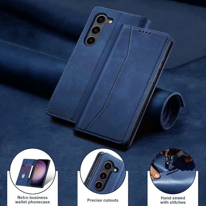 Jasonyu Flip Wallet Case for Samsung Galaxy S23 Plus/S23+ 5G,Leather Magnetic Folio Cover with Card Holder,Kickstand - TPU Shockproof Durable Protective Phone Case,Blue