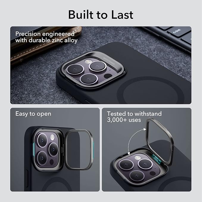 - Adjustable Stash Stand: positioned around camera frame to stay hidden when folded away while keeping MagSafe ring 100% unobstructed; enjoy a freely adjustable and stable view for watching shows whenever, wherever