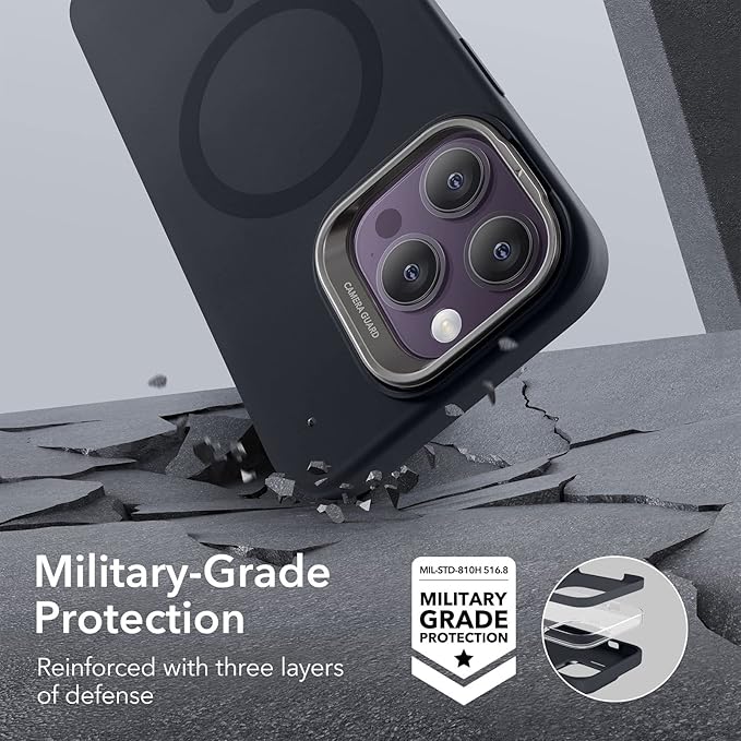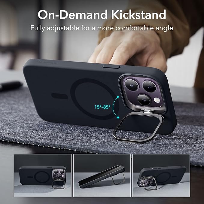 ESR for iPhone 14 Pro Max Case,Compatible with MagSafe Silicone Case with Stand, Military-Grade Protection, Built-in Camera Stash Stand, Magnetic Phone Case, Cloud Series,Black