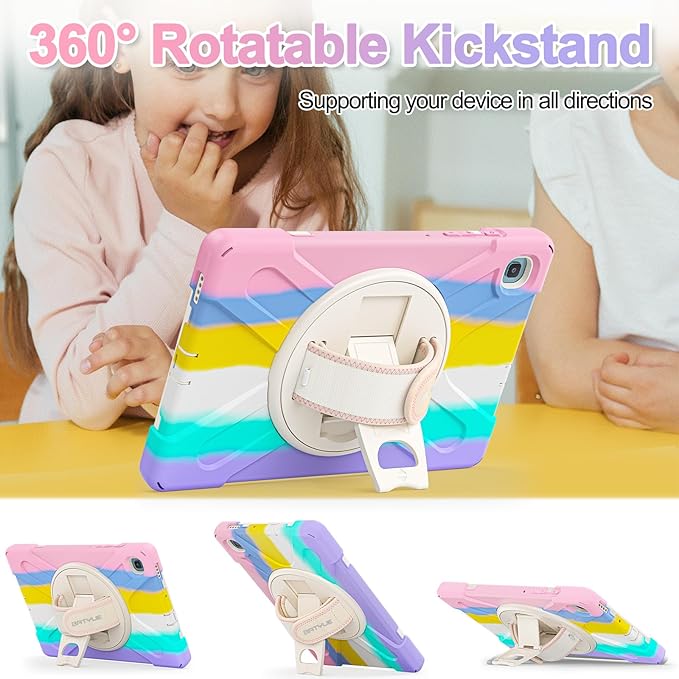 BATYUE Case for Samsung Galaxy Tab S6 Lite 10.4 Inch 2024/2022/2020 (SM-P610/P613/P615/P619/P620/P625/P627), Protective Cover with Pencil Holder, Shoulder Strap, Hand Strap, Kickstand (Colourful Pink)