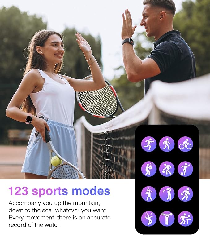 - WRIST HEALTH CENTER — Our smartwatch has an optical heart rate monitor that uses scientifically quantified big data to help you keep track of your health. Monitor your daily , blood oxygen, respiration, sleep, and more to motivate you to live a healthier life. With 123 sports modes, it helps you track your sports status, adjust your sports plan, and record more accurate sports data.
