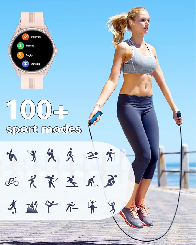 - 【Fitness Tracker with 100+ Sports Modes & IP68 Waterproof】This fitness watch will accurately record your all-day activities like steps taken, calories burned and miles walked, and can also track 100+ indoor and outdoor sports. The fitness tracker is IP68 waterproof, you can wear it with no worries in your daily life.