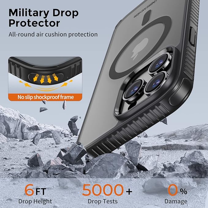 UNBREAKcable Magnetic Case for iPhone 14 Pro Max, [Compatible with MagSafe] [Military Grade Shockproof] [Non-Slip] Translucent Matte Back& Soft Silicone Airbag Bumper for Apple 6.7inch – Black