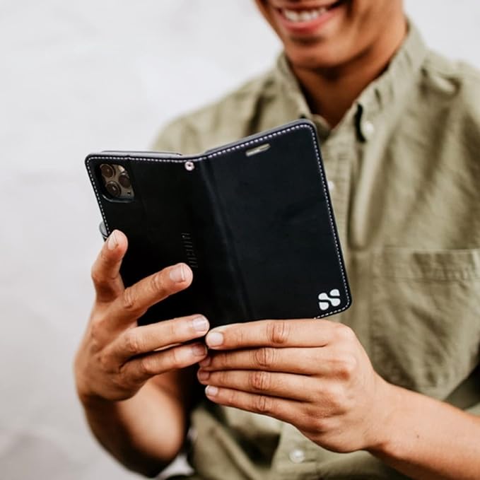 - VEGAN LEATHER - Rare among EMF protection cell phone cases, this vegan leather construction provides a rich, professional look while remaining free of animal products; the perfect Samsung Galaxy S21 case for men and women. Feel confident knowing you're using a stylish cruelty free EMF protecting cell phone case.