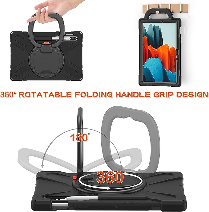 - 🌷 Multi function : The 360 degree rotating bracket provides multi angle viewing, providing your Samsung Galaxy Tab S8/S7 11 inch. (Model:SM-X700/X706/T870/T875/T878) with a very convenient and amazing use experience. After the bracket is opened, it can be grasped and carried as a comfortable handle.You can also easily hang your tablet on the wall or anywhere you like