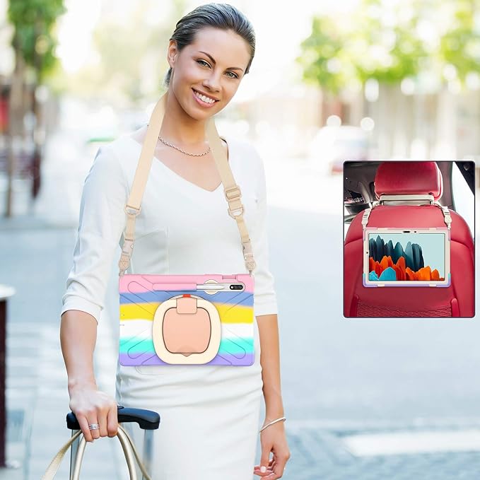 - 🌷 Removable & Adjustable Shoulder Strap : Portable shoulder strap, etachable, adjustable length, It is very convenient for you to carry your Samsung Galaxy Tab S8 /Galaxy Tab S7 11 inch at work, travel or outdoors, It is also very suitable for children. You can also hang it behind the headrest of the car seat.