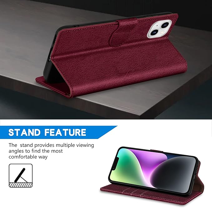 ZZXX for iPhone 14 Wallet Case with [RFID Blocking] Card Slot Kickstand Magnetic Closure Leather Flip Fold Protective Phone Case for iPhone 14 Case Wallet(Wine Red-6.1 inch)