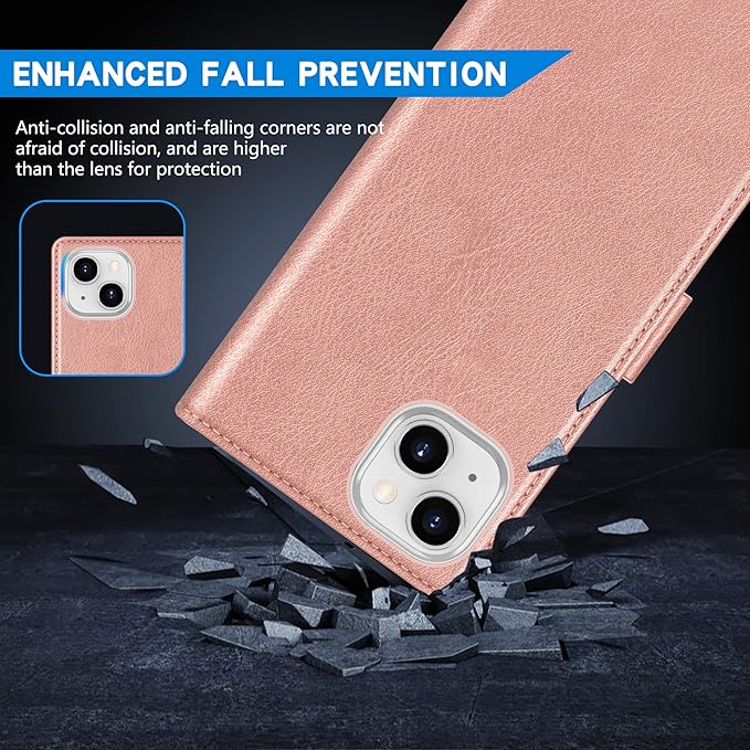 ZZXX for iPhone 14 Wallet Case with [RFID Blocking] Card Slot Kickstand Magnetic Closure Leather Flip Fold Protective Phone Case for iPhone 14 Case Wallet(Rose Gold-6.1 inch)