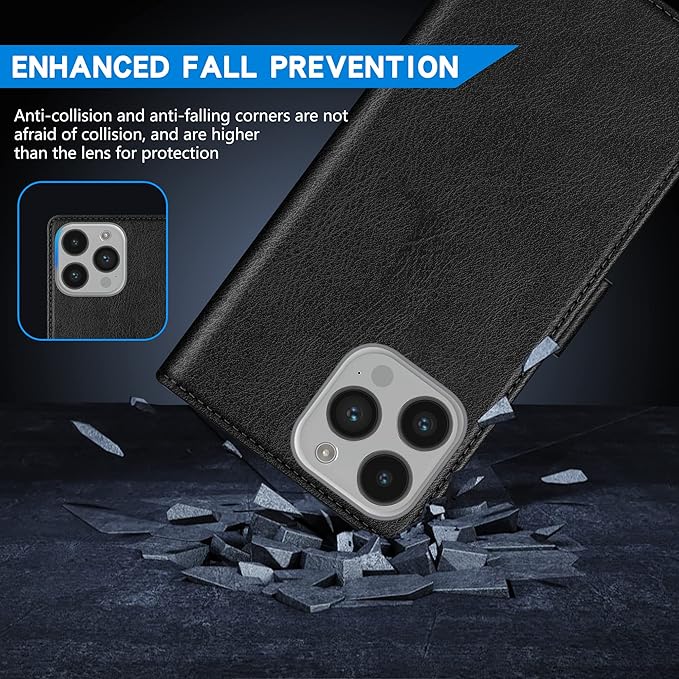 ZZXX for iPhone 14 Pro Wallet Case with [RFID Blocking] Card Slot Kickstand Magnetic Closure Leather Flip Fold Protective Phone Case for iPhone 14 Pro Case Wallet(Black-6.1 inch)