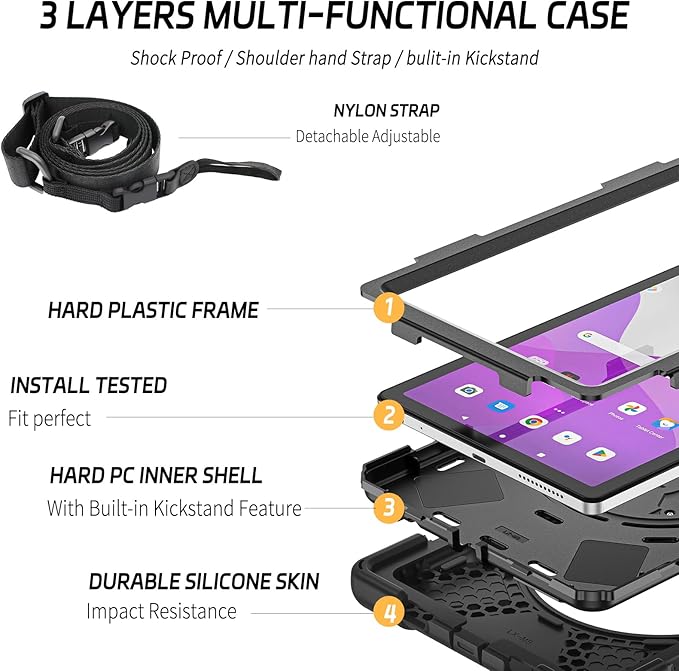 - Full Body Protection-With 3 layers design silicone outer frame and 2 pieces Combination of hard reinforced inner shell, this Lenovo Tab M9 is shockproof and help protector your tablet. Perfect for adults and kids