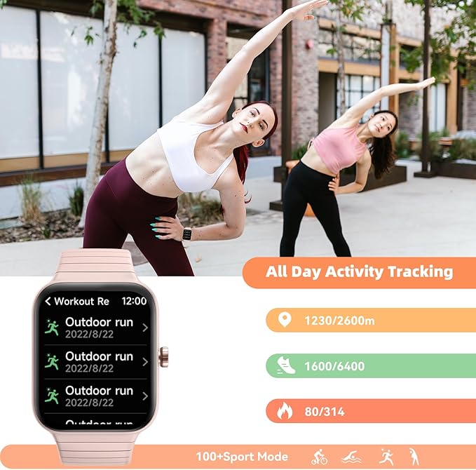 - [Sports Partner] This smart fitness watch will auto-tracker steps, distance and calories in daily life. With advanced chips and excellent algorithms, your daily sports data will be more accurate. Besides that, this fitness watch also has 100 workouts for more detailed data, and you can check your real-time heart rate during sports.