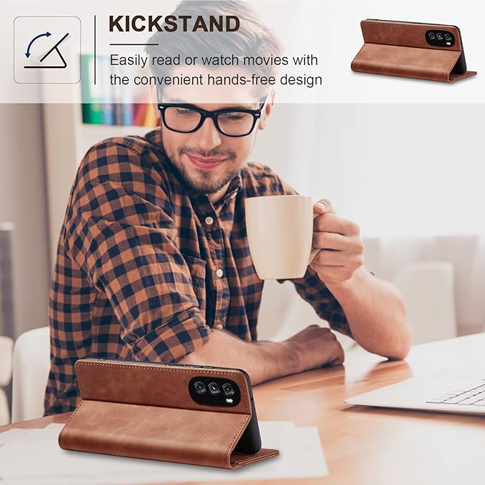 Jasonyu Flip Wallet Case for Moto G 5G (2022),Leather Magnetic Folio Cover with Card Holder,Kickstand - TPU Shockproof Durable Protective Phone Case,Brown