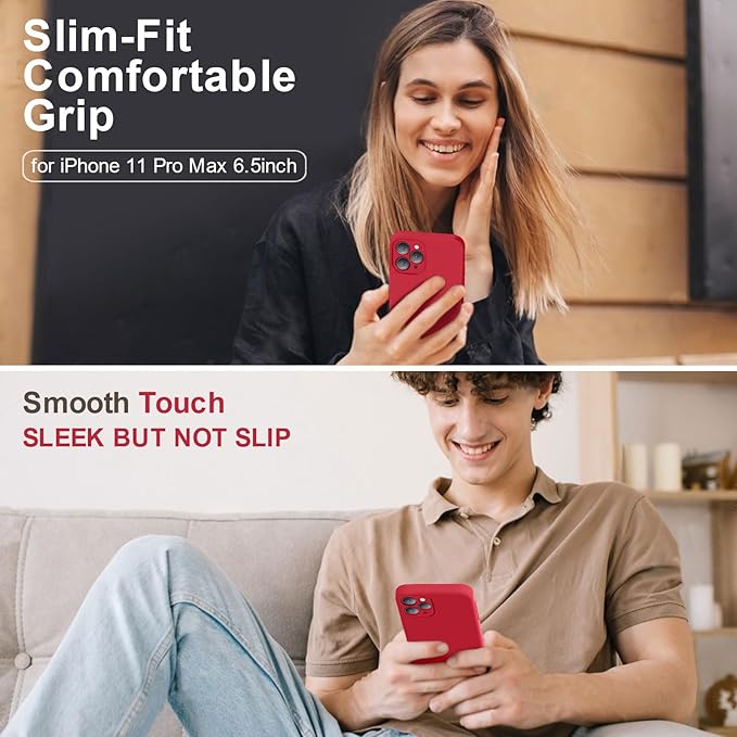 Vooii Compatible with iPhone 11 Pro Max Case, Upgraded Liquid Silicone with [Flat Edges] [Camera Protection] [Soft Anti-Scratch Microfiber Lining] Phone Case for iPhone 11 Pro Max - Red