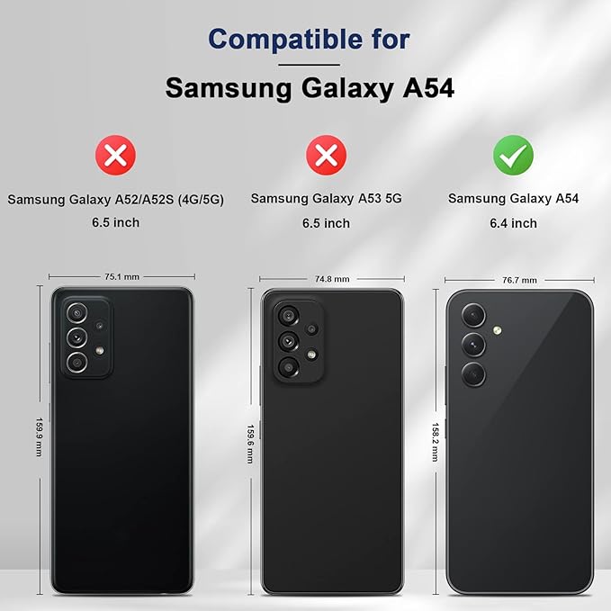 - 【Compatibility】:Designed for Samsung Galaxy A54.The Leather wallet case precise cutouts for easy access to all ports, buttons, sensors and cameras. Soft buttons with good response, are easy to press.Please check your phone model that is correct before placing an order.