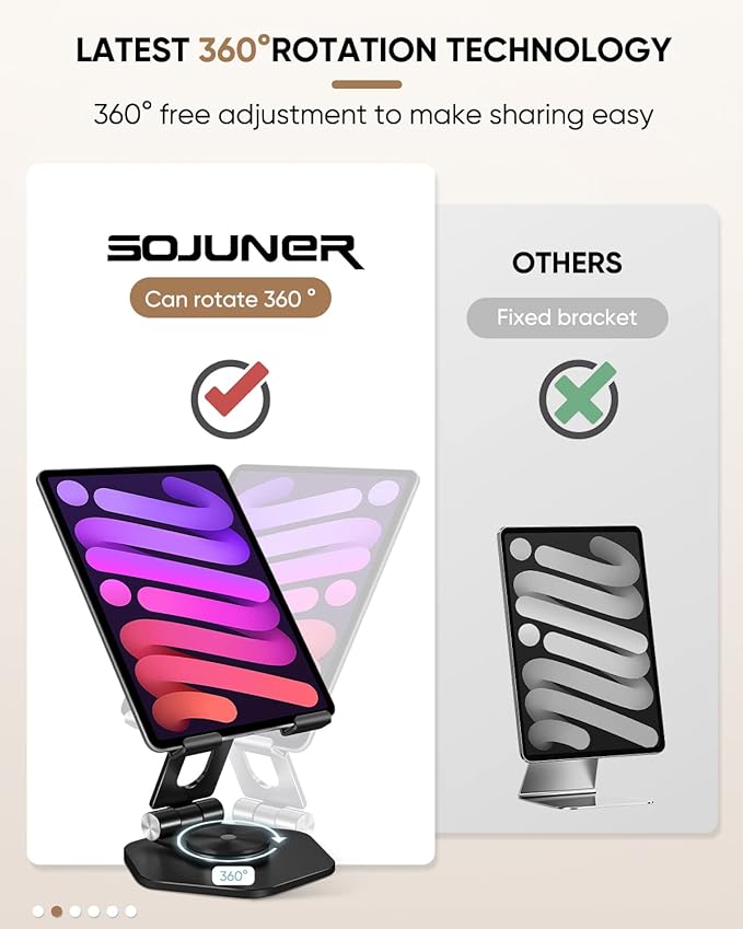 - 【360°Rotation】The swivel tablet stand used in multiple scenes in life, share your joy and creation at any time, easily enjoy the convenience of 360°rotation, no need to move the traditional tablet stand back and forth like before, It is a good partner for iPad, it is a good choice for webcasting
