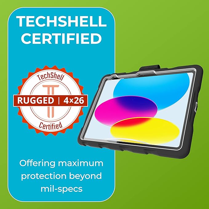 - ALL AROUND PRIME PROTECTION - Our cases provide always-on standard protection with TechShell certified durability, guaranteeing drop protection up to four (4) feet. Ensuring your tablet is safe with our RUBBERIZED BUMPERS CORNERS and our signature TREAD DESIGN surround the 4 EDGES of your iPad for maximum shock absorption with a screen overlay and port covers to protect against liquid, dust, and dirt.