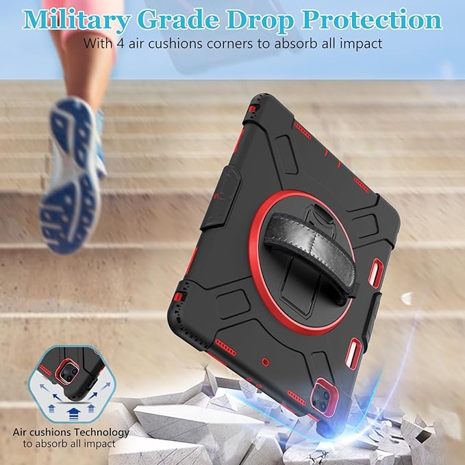 Case for iPad Pro 12.9 2022/2021/ 2020/2018: Cover for iPad Pro 12.9 6th/ 5th/ 4th/ 3rd Generation with Screen Protector- Stand- Pencil Holder- Handle- Shoulder Strap Red+Black