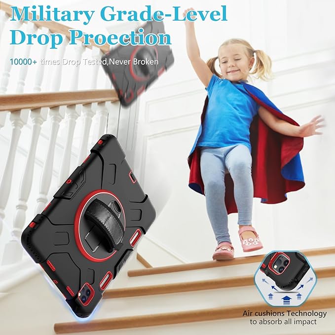 - MATERIAL COMPOSITION: This iPad Pro 11 inch case has a built-in screen protector. The inner cover and frame are Made from Hard PC and outer layer is Silicone. Our triple defense system has passed the Military Grade Drop Test [MIL-STD 810G-516.6] and can withstand shocks and drops from up to 15 feet, 10,000 times. These shock-absorbent layers incorporate Air Cushion Technology to effectively protect your iPad from accidental drops, bumps, and scratches